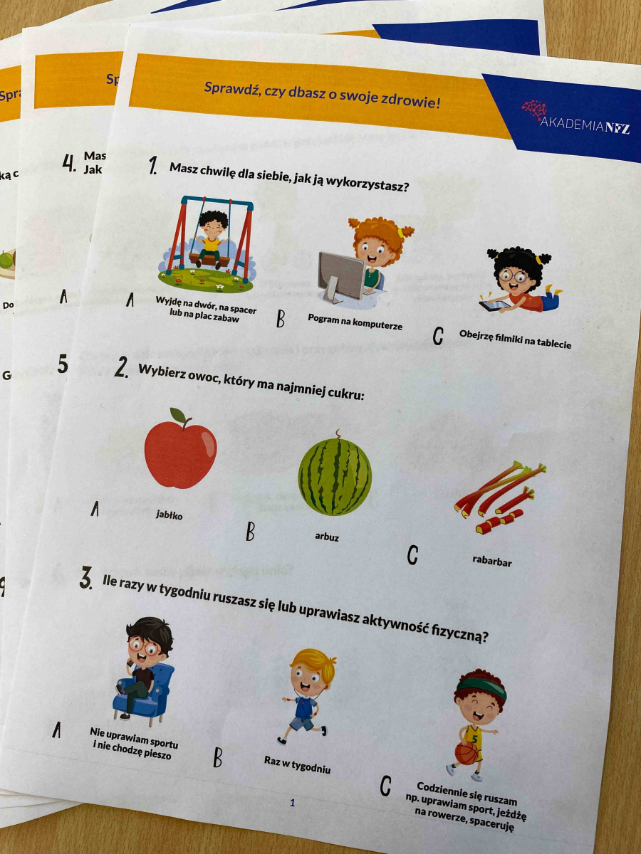 Podczas pogadanki uczniowie dowiedzieli się, jak ważne jest prawidłowe odżywianie oraz dbanie o dobrostan psychiczny. Zwieńczeniem spotkania był quiz, w którym dzieci mogły zweryfikować swoją wiedzę i dowiedzieć się, jakie nawyki warto wprowadzić do codziennego planu dnia.