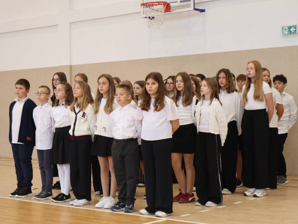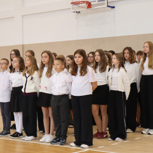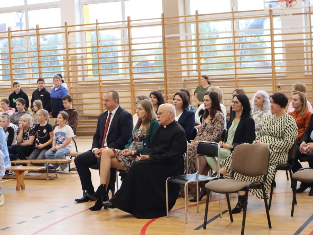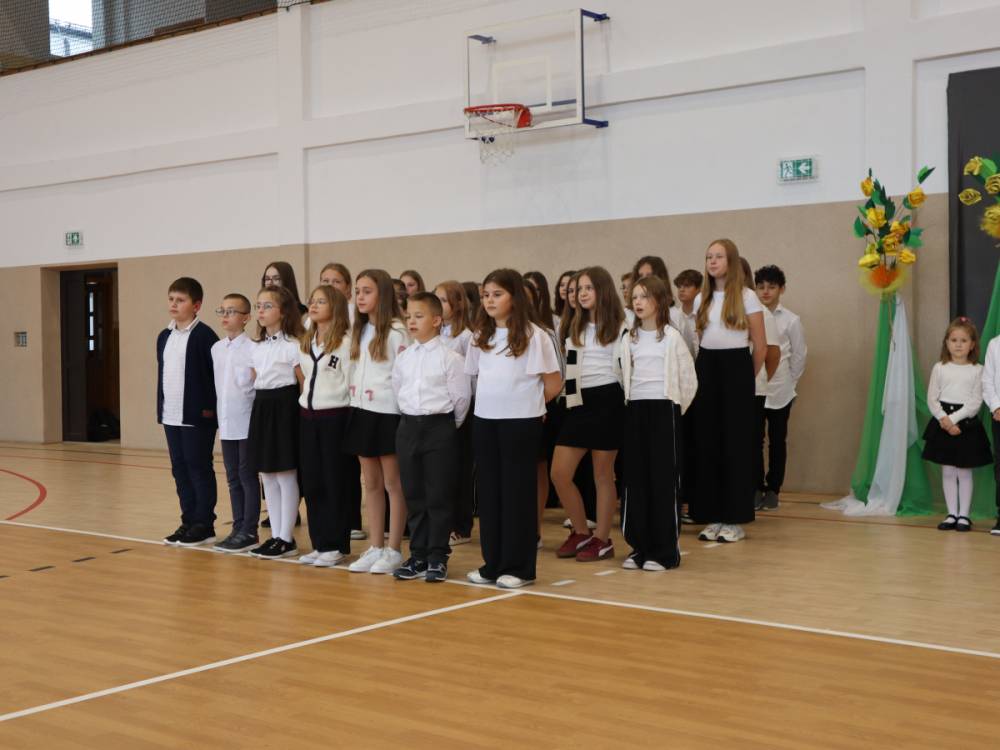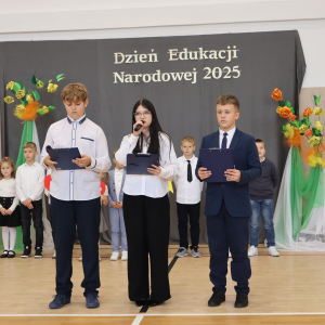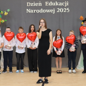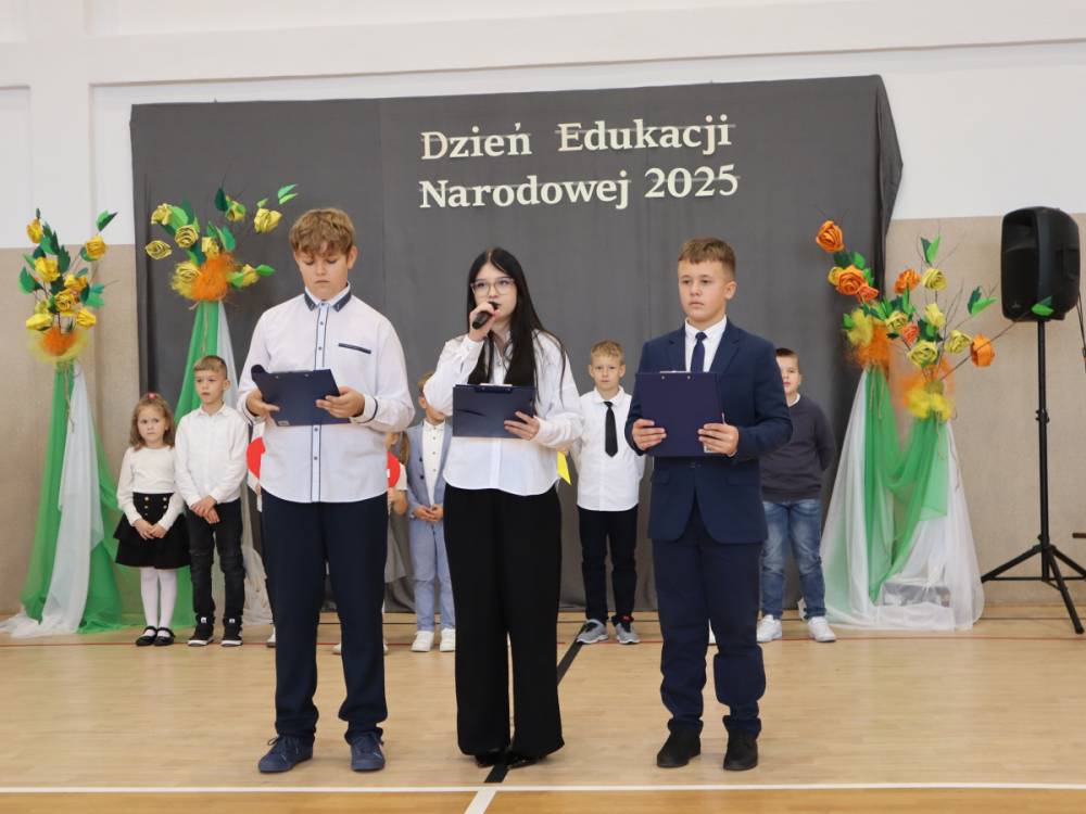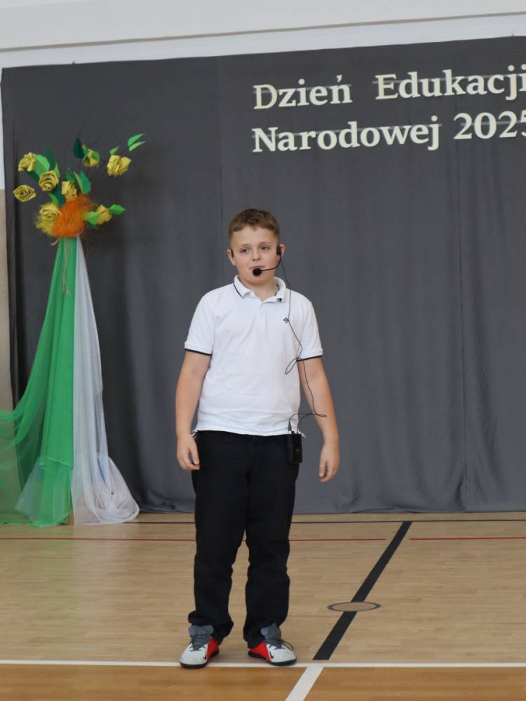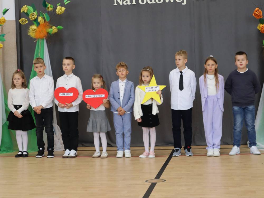 10 października w naszej szkole odbyły się uroczyste obchody Dnia Edukacji Narodowej. Z tej okazji przygotowany został apel, w którym swoje talenty zaprezentowały dzieci z grup przedszkolnych oraz przedstawiciele uczniów klas I–VIII. Poprzez wiersze, piosenki i krótkie inscenizacje uczniowie w piękny i wzruszający sposób wyrazili wdzięczność oraz serdeczne podziękowania wszystkim pracownikom szkoły – nauczycielom, wychowawcom, a także pracownikom administracji i obsługi. Program artystyczny pełen był radości, uśmiechów i ciepłych życzeń, które zostały przyjęte z ogromnym uznaniem. Na zakończenie uroczystości uczniowie wspólnie odśpiewali tradycyjne „Sto lat”, a następnie wręczyli drobne, symboliczne upominki przygotowane przez Samorząd Uczniowski.