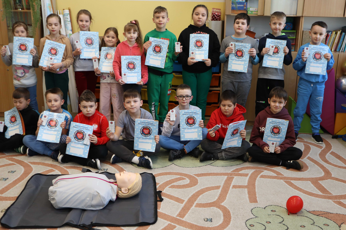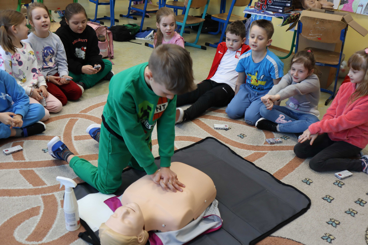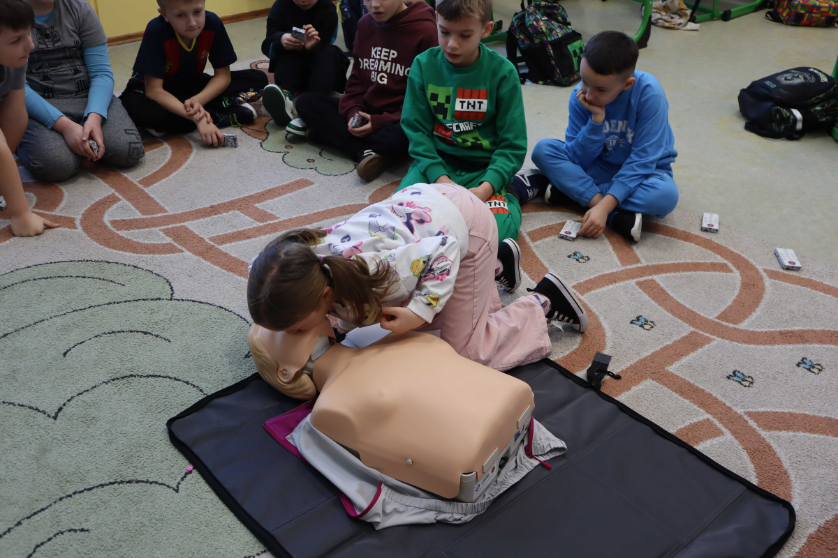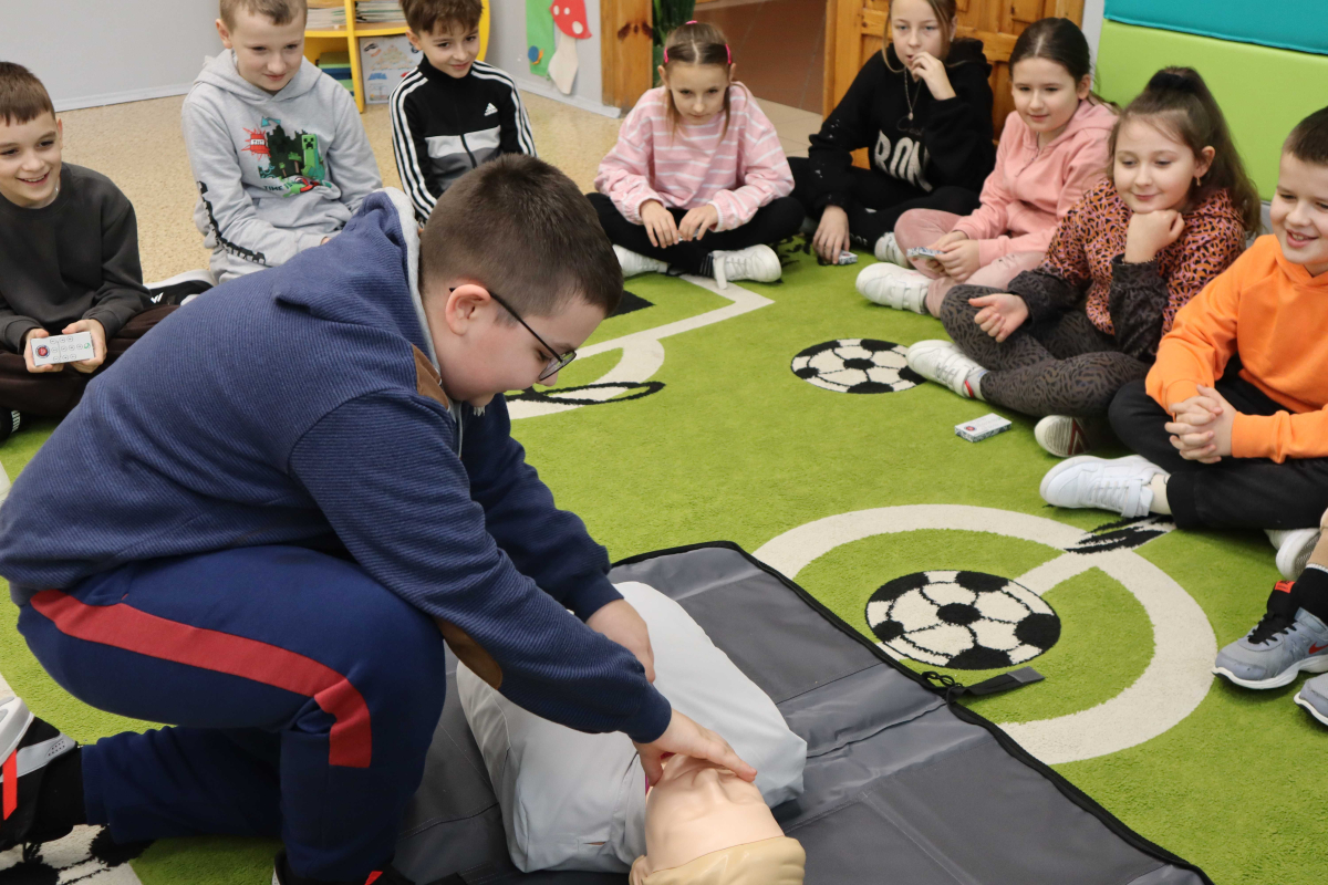 Niezwykle cennym elementem dnia były zajęcia z pierwszej pomocy, przeprowadzone w oparciu o materiały i standardy Fundacji WOŚP w ramach ogólnopolskiego programu „Ratujemy i Uczymy Ratować”. Dzięki profesjonalnym pomocom dydaktycznym, nauka stała się dla dzieci zrozumiała i przystępna.