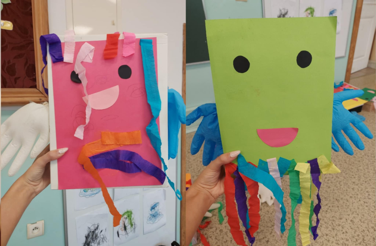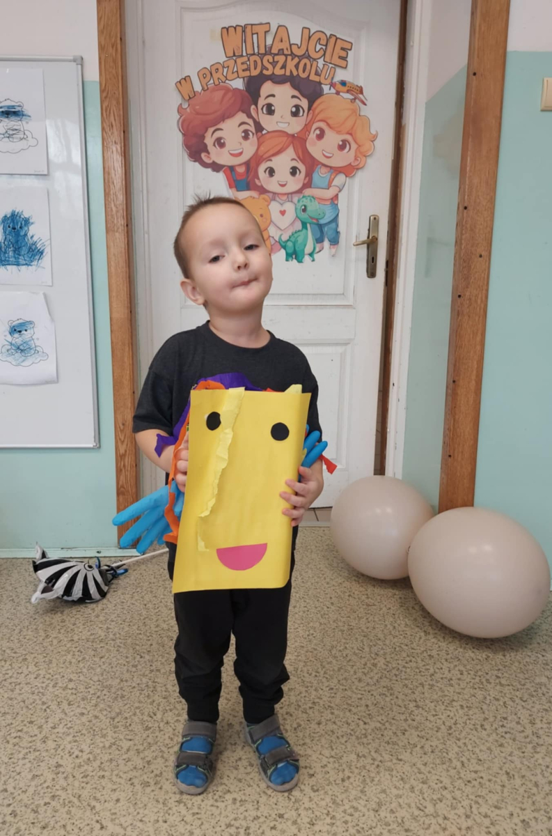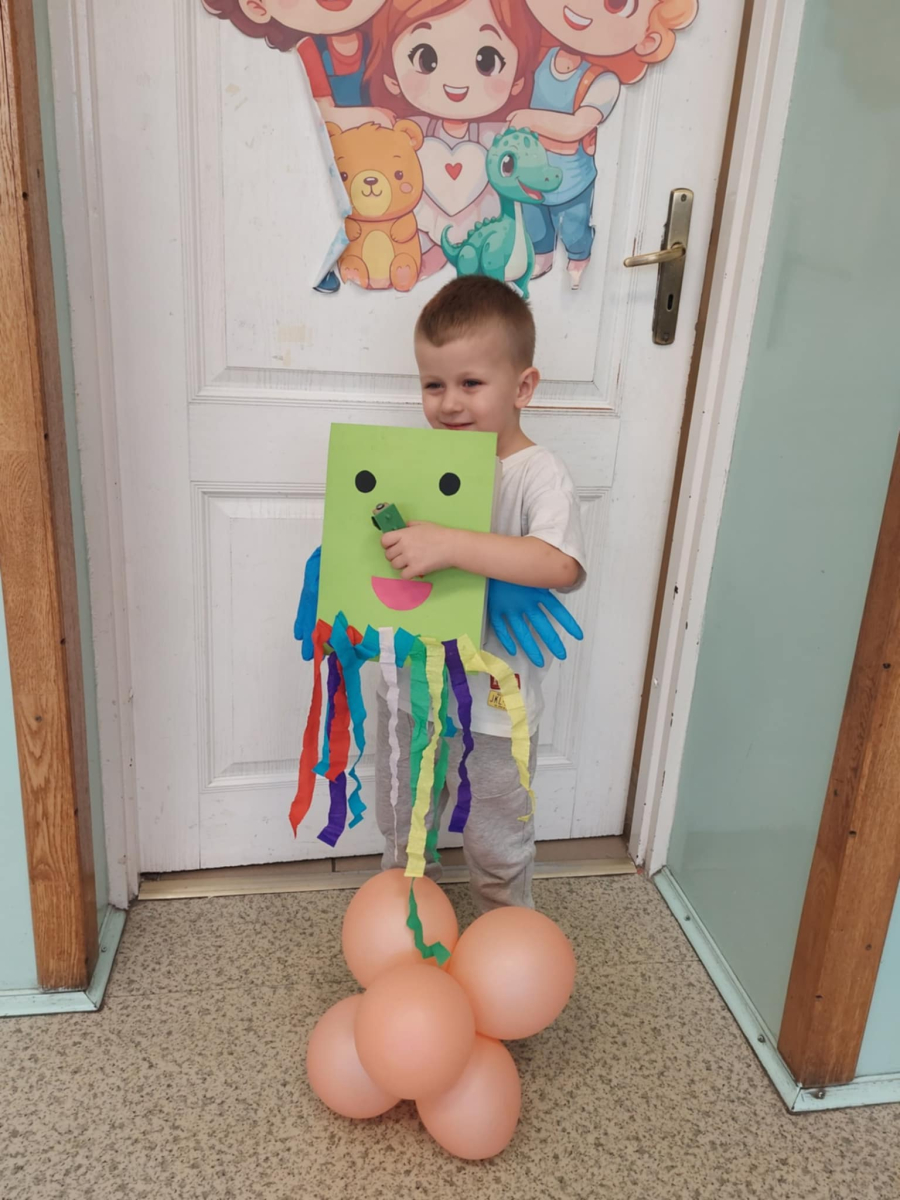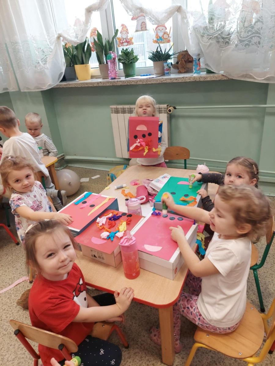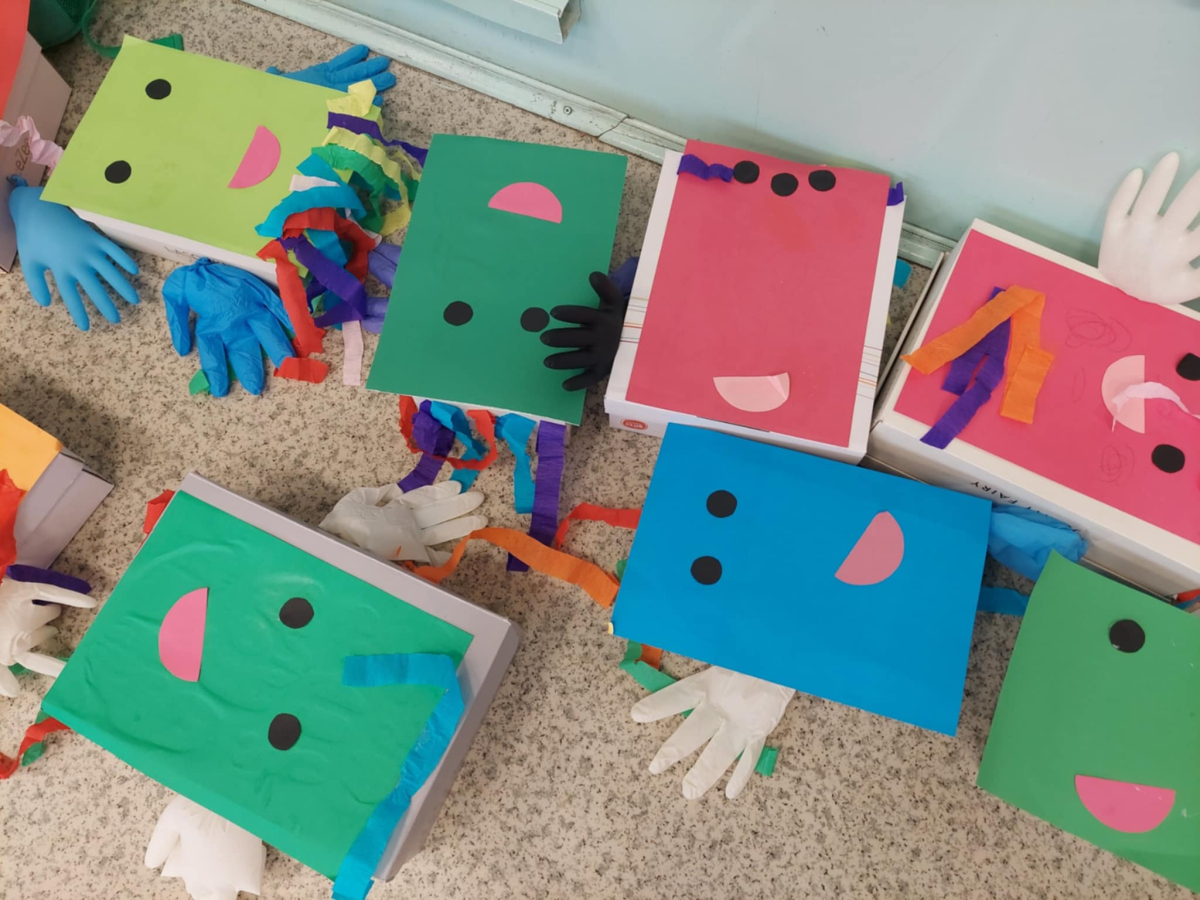 W ramach grudniowej realizacji innowacji pedagogicznej pt. ,,Zabawa w rytmie dziecięcej wyobraźni – świat bez zabawek jako przestrzeń kształtowania aktywności twórczej dzieci’’ przedszkolaki z grupy młodszej miały okazję wejść w świat twórczych eksperymentów, tworząc własne roboty z materiałów wtórnych i recyklingowych: pudełek po butach, gumowych rękawiczek, bibuły i kolorowego papieru.