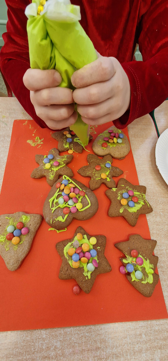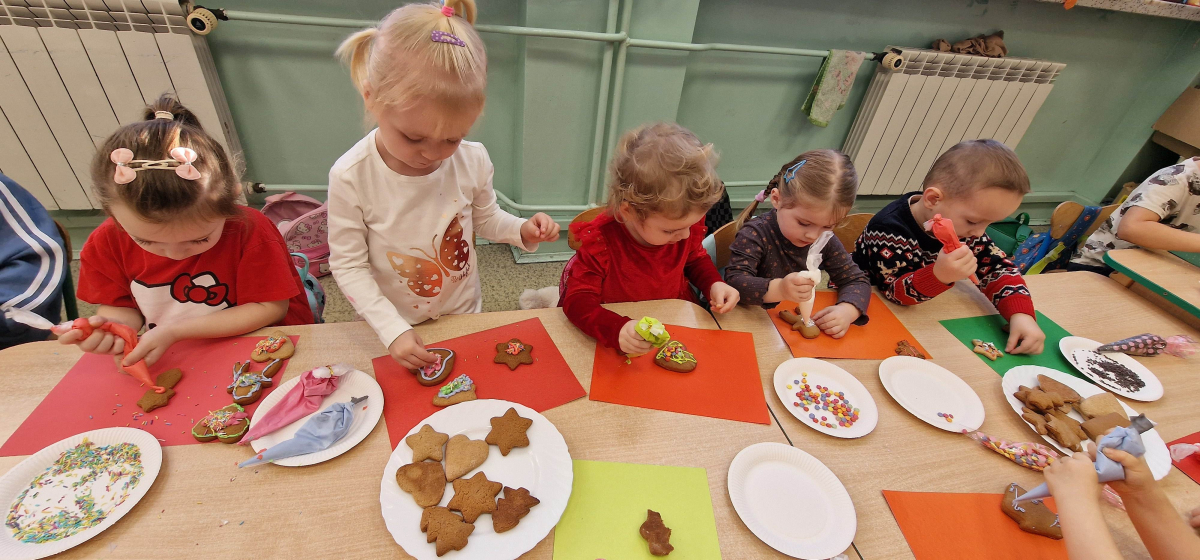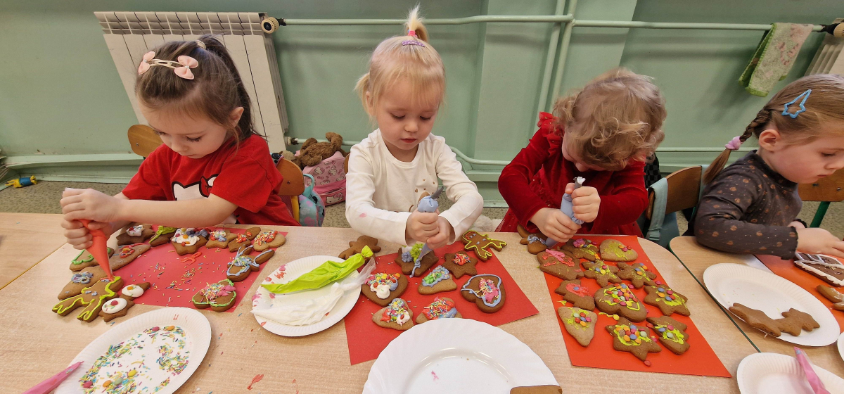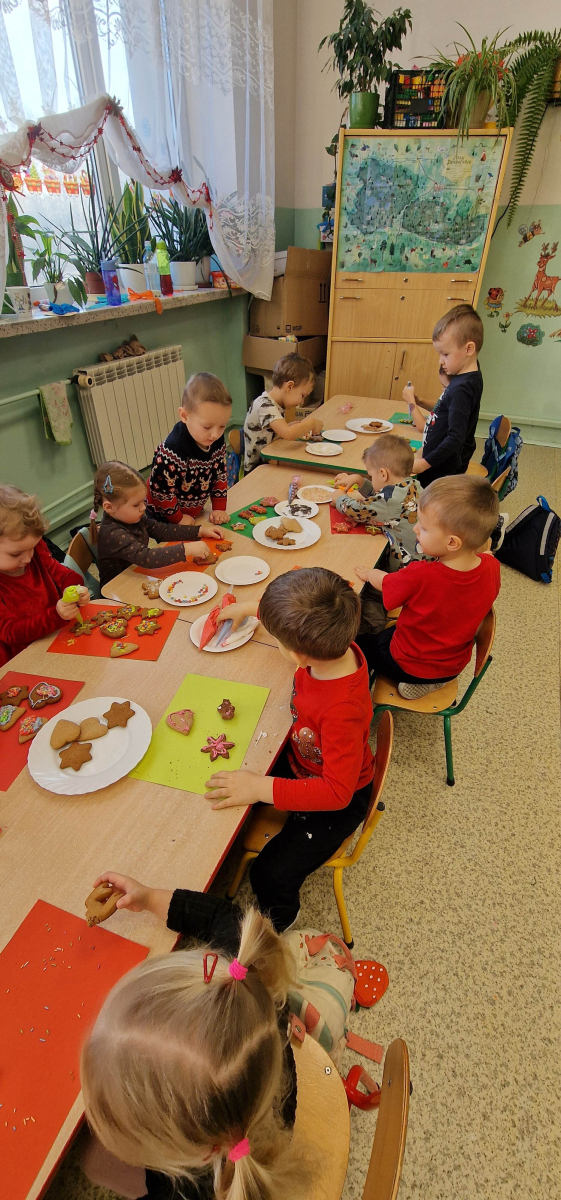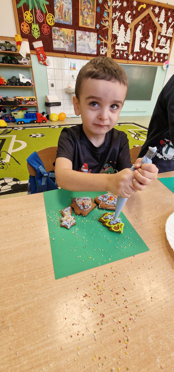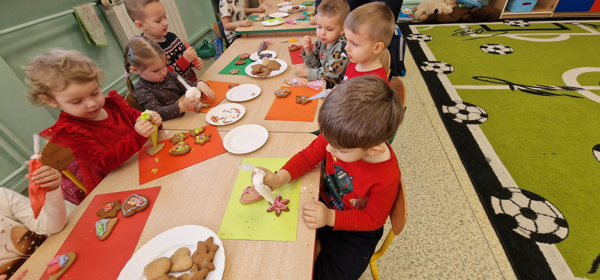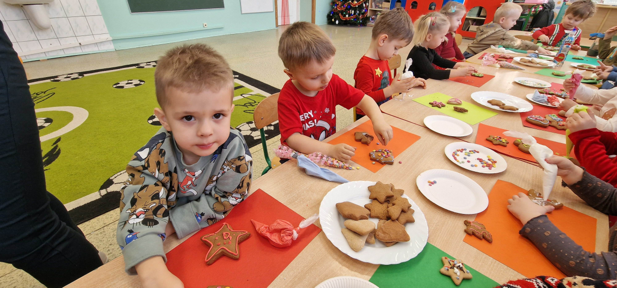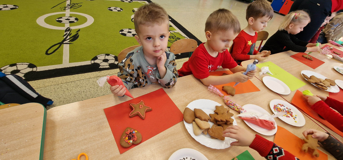 Słodkie, grudniowe zajęcia – ozdabianie pierniczków w młodszej grupie przedszkolnej