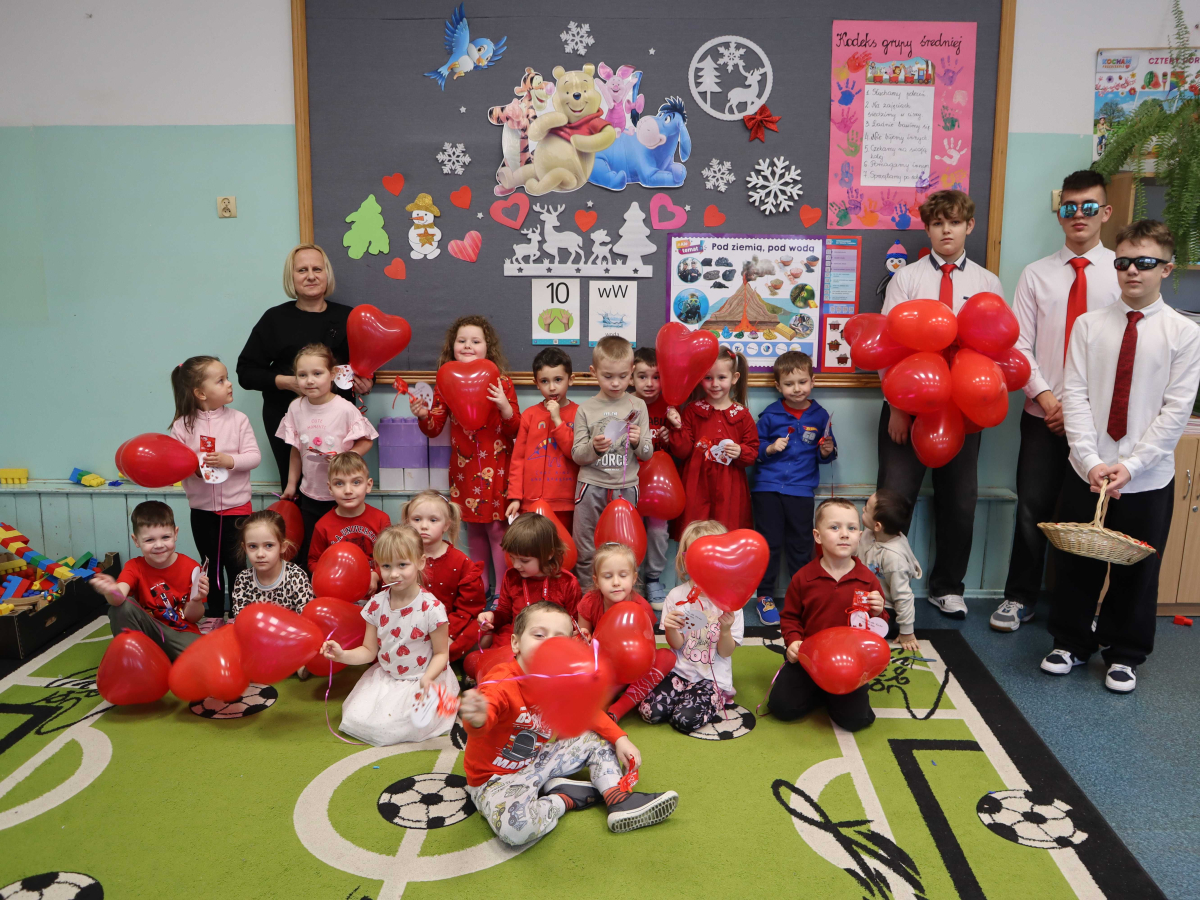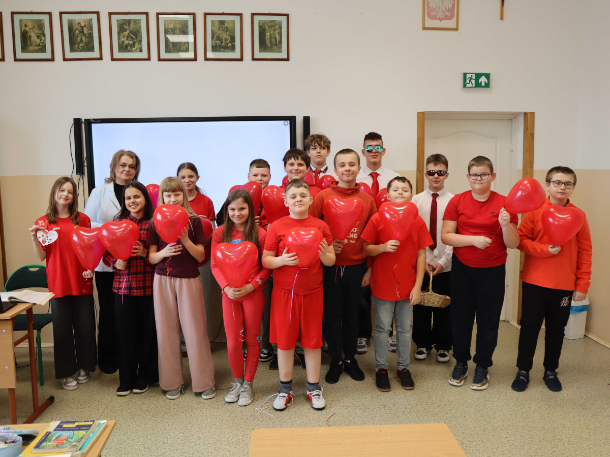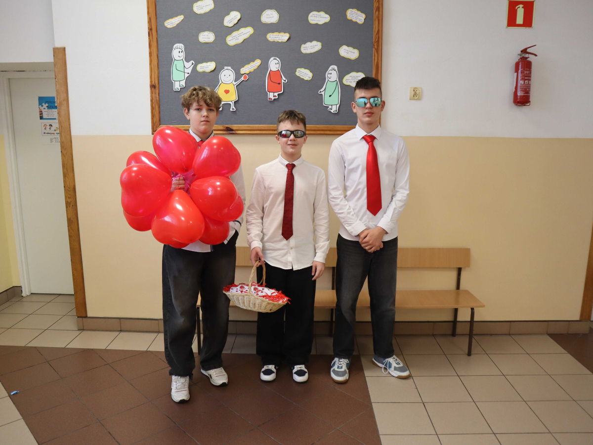 Z tej okazji Samorząd Uczniowski przygotował dla całej społeczności szkolnej miłą niespodziankę, aby każdy w tym dniu mógł poczuć się wyjątkowy i doceniony. Każdy uczeń oraz nauczyciel otrzymał słodką walentynkę oraz balon w kształcie serca.